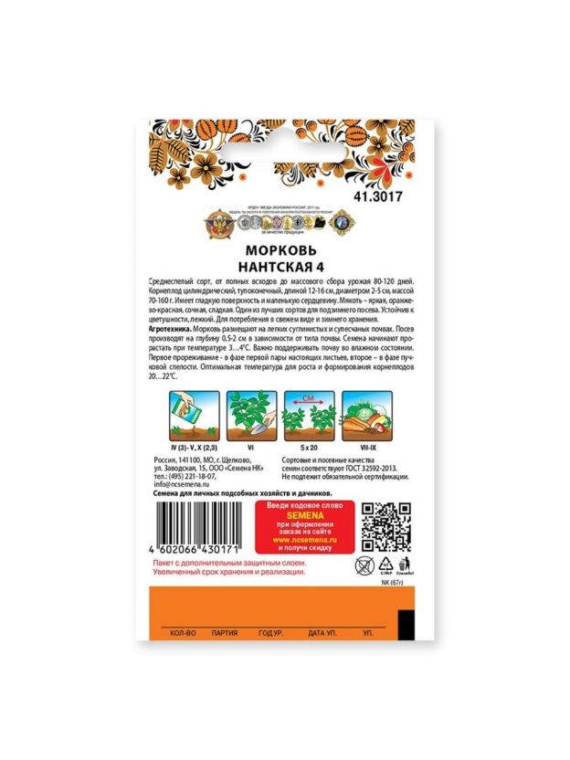 Откройте для себя истинный вкус свежести с семенами моркови "Нантская 4" от бренда "Русский огород". Эта среднеспелая однолетняя культура порадует вас сочными и сладкими корнеплодами, выращенными на вашем участке. Семена упакованы в яркую цветную упаковку, которая сохраняет их качество и свежесть.