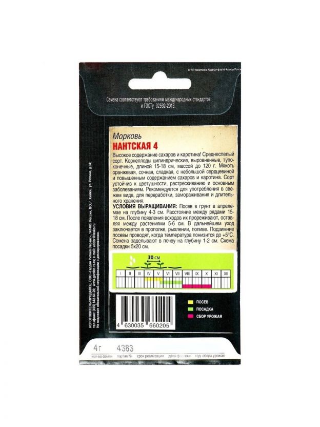 Семена Морковь, Нантская 4, 4 г, цветная упаковка, Тимирязевский питомник