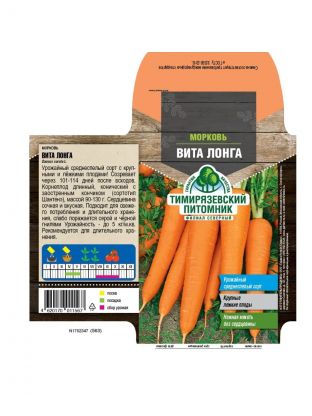 Семена моркови Вита Лонга 2 г — урожайный сорт для дачи и огорода, среднеспелый, в цветной упаковке от Тимирязевского питомника.