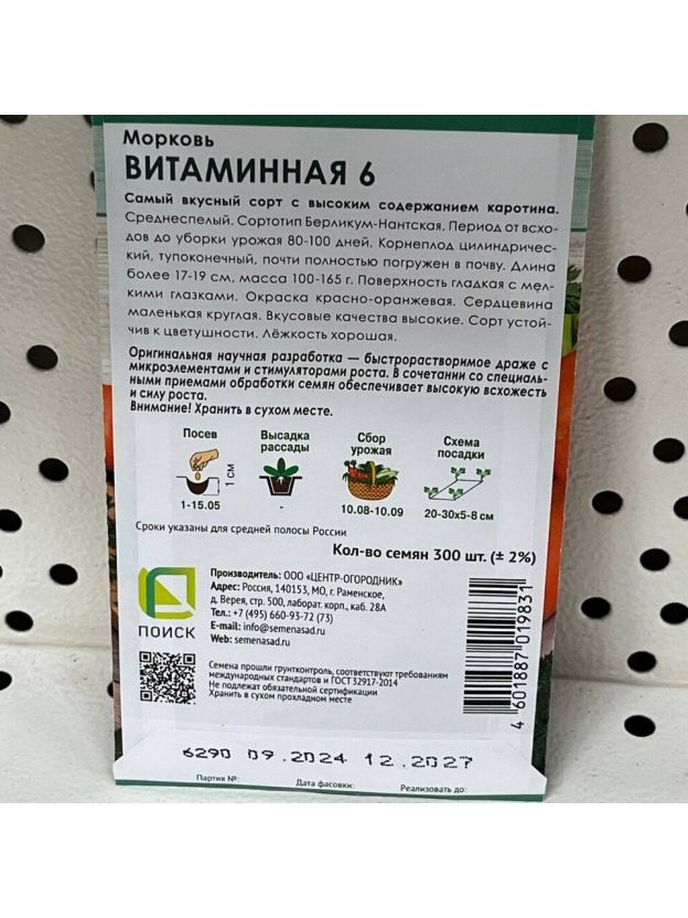 Семена Морковь, Витаминная 6, 4.5 г, драже, цветная упаковка, Поиск