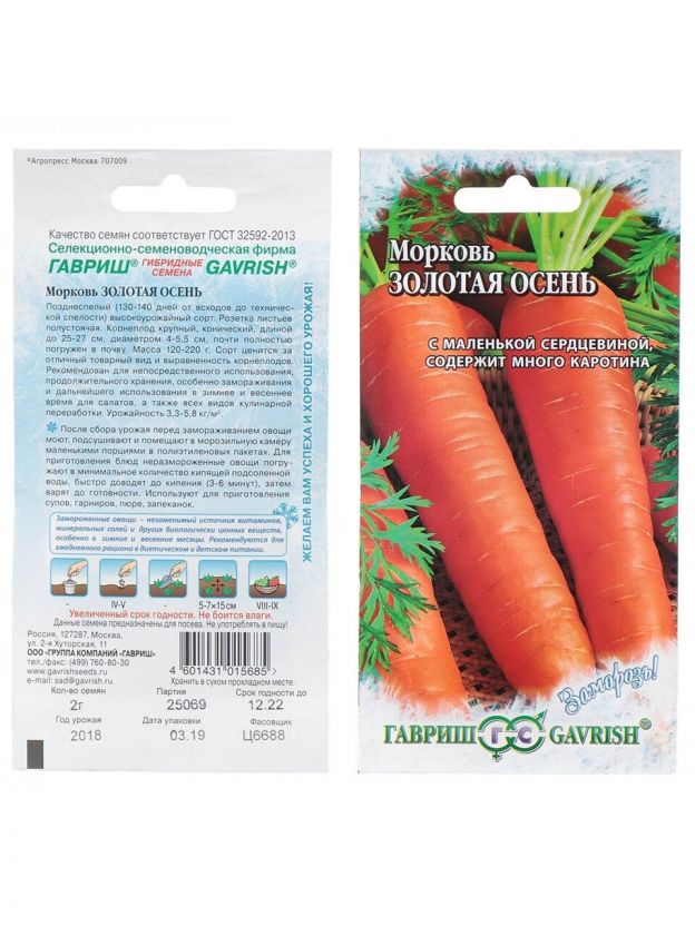 Семена Морковь, Золотая осень, 2 г, Заморозь!, цветная упаковка, Гавриш