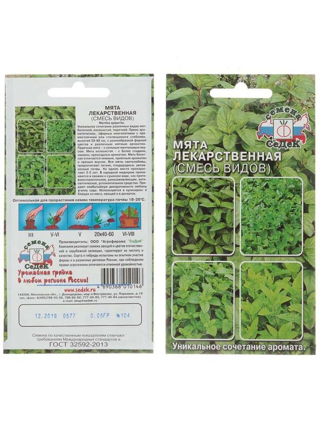 Семена Мята, Лекарственная, смесь видов, цветная упаковка, Седек