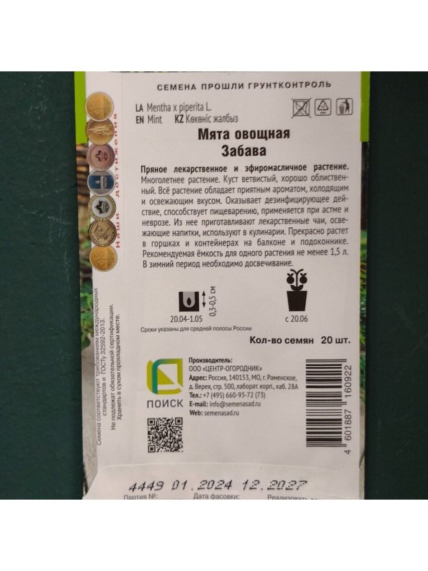 Семена Мята, Овощная Забава, Четыре лета, цветная упаковка, Поиск