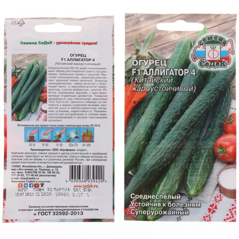 Семена Огурец, Аллигатор 4 F1, 0.2 г, цветная упаковка, Седек