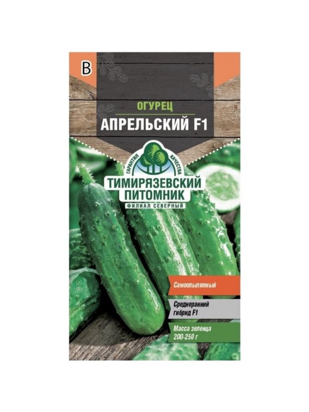 Семена Огурец, Апрельский ранний F1, 0.3 г, цветная упаковка, Тимирязевский питомник
