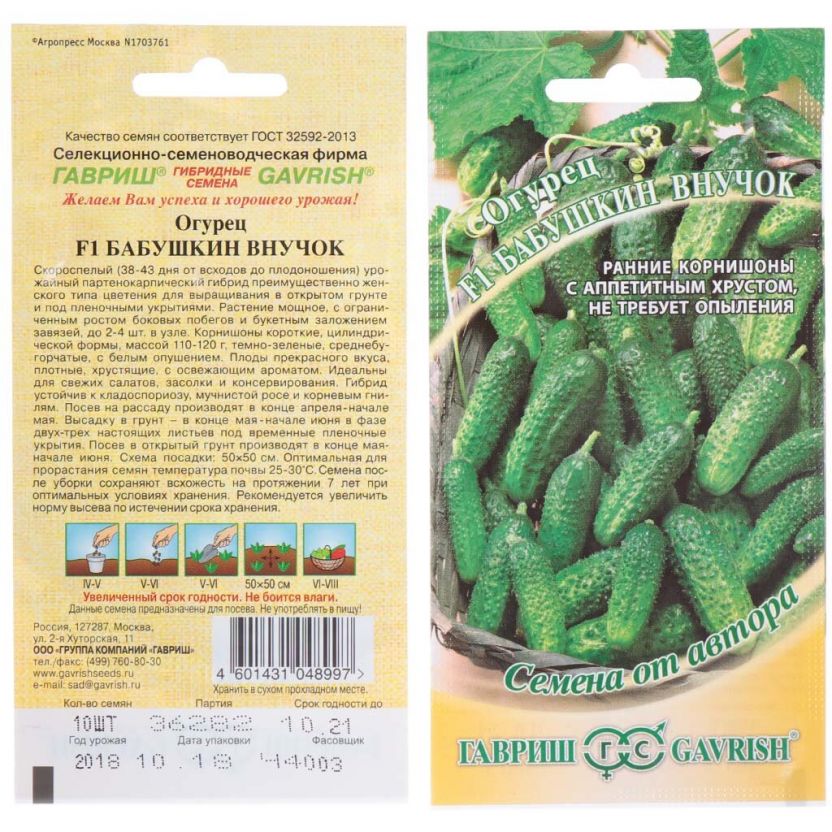 Семена Огурец, Бабушкин внучок F1, Семена от автора, цветная упаковка, Гавриш
