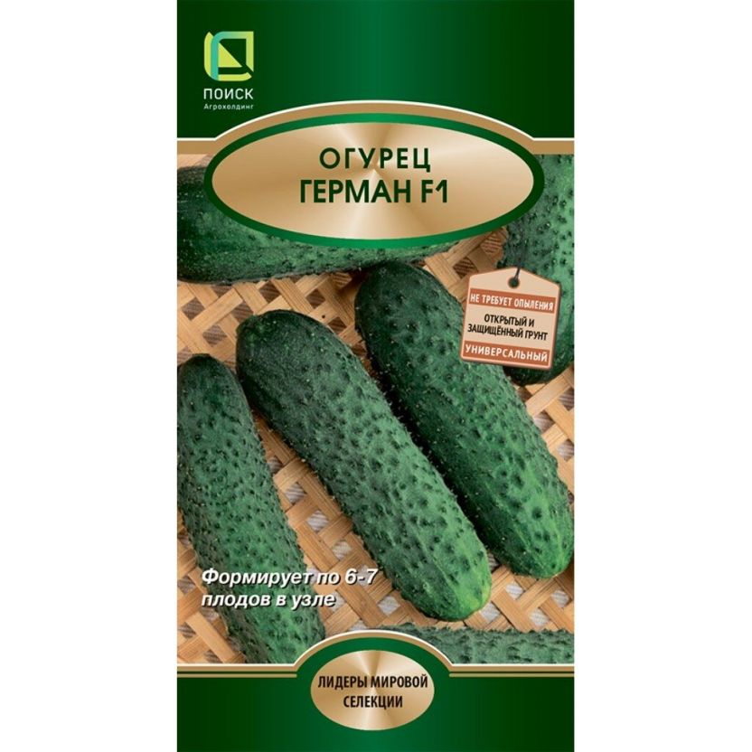 Ищете идеальные семена для огурцов? Представляем "Семена Огурец, Герман F1" в яркой цветной упаковке от бренда Поиск. Эти раннеспелые семена из Нидерландов подходят для тех, кто хочет получить богатый урожай за короткий срок.
