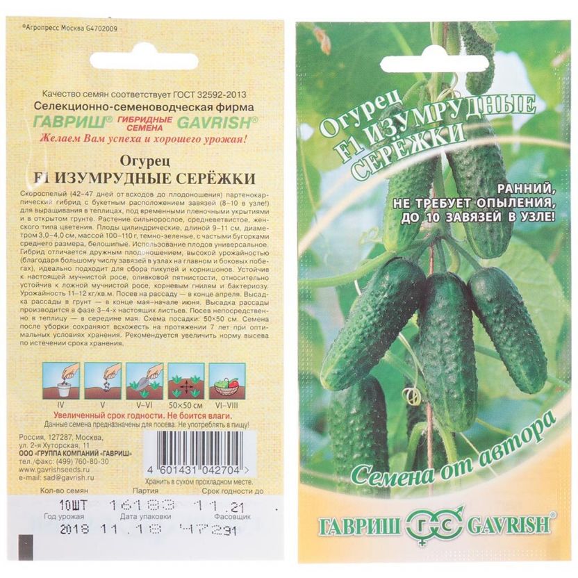 Семена Огурец, Изумрудные сережки F1, Семена от автора, цветная упаковка, Гавриш