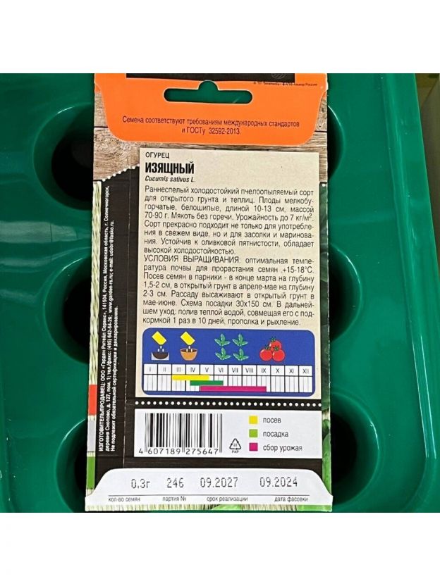 Откройте для себя мир свежих овощей с семенами огурца "Изящный" от Тимирязевского питомника. Эти раннеспелые семена, упакованные в яркую цветную упаковку, станут идеальным выбором для тех, кто стремится к быстрому и качественному урожаю.