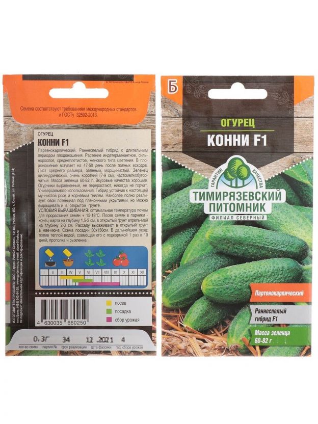 Семена Огурец, Конни F1, 0.3 г, цветная упаковка, Тимирязевский питомник