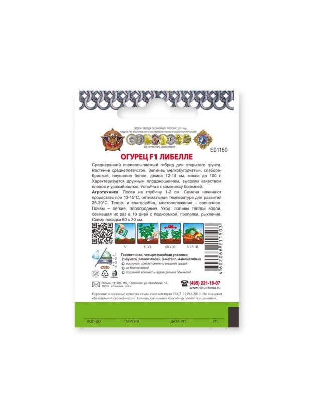 Семена Огурец, Либелле F1, 0.3 г, Кольчуга, цветная упаковка, Русский огород