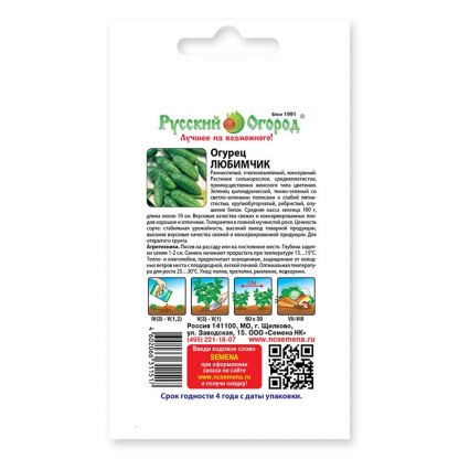 Семена Огурец, Любимчик, 0.5 г, цветная упаковка, Русский огород