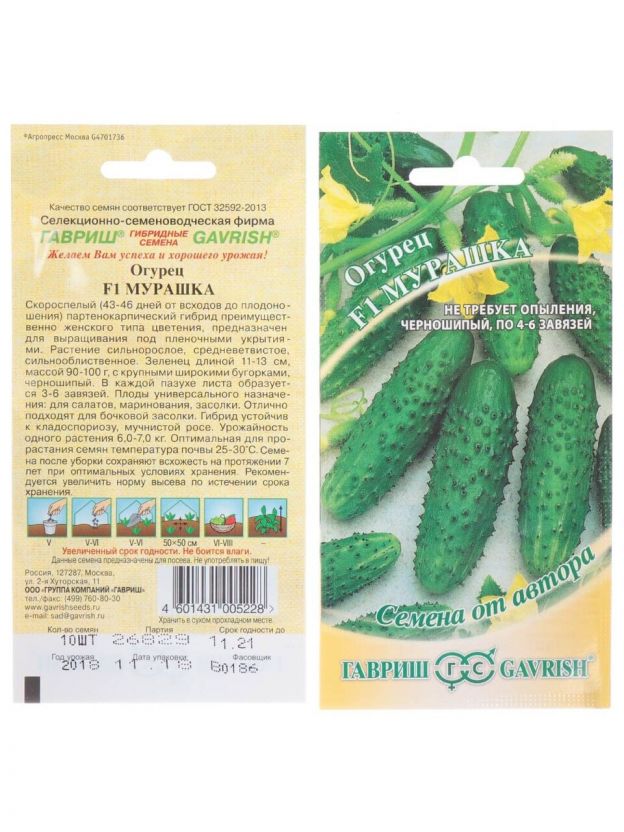 Семена Огурец, Мурашка F1, Семена от автора, цветная упаковка, Гавриш