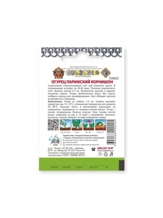 Семена Огурец, Парижский корнишон, 0.5 г, Кольчуга, цветная упаковка, Русский огород