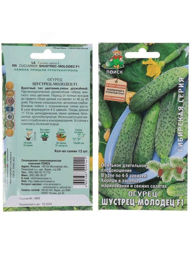 Семена Огурец, Шустрец-молодец F1, Сибирская, цветная упаковка, Поиск
