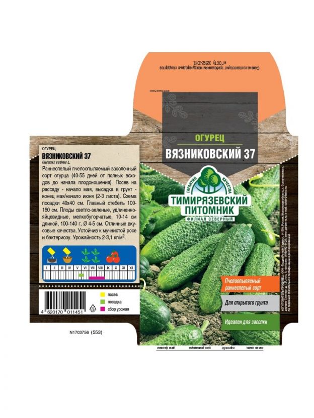 Семена Огурец, Вязниковский, 0.5 г, цветная упаковка, Тимирязевский питомник