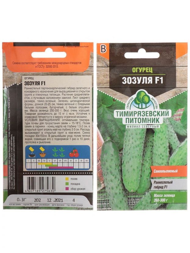Семена Огурец, Зозуля F1, 0.3 г, цветная упаковка, Тимирязевский питомник