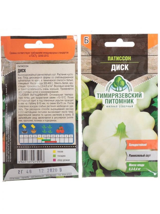 Семена Патиссон, Диск, 2 г, цветная упаковка, Тимирязевский питомник