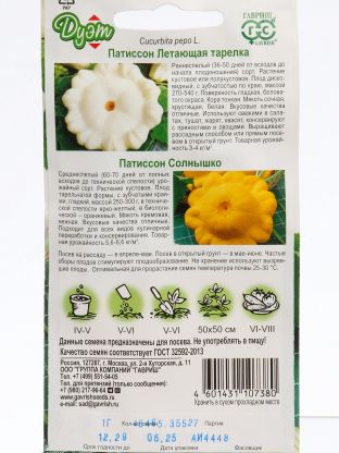 Закажите семена патиссона Летающая тарелка + Солнышко серии Дуэт Гавриш прямо сейчас – получите свежий урожай уже этим летом. Гарантия оригинальности, быстрая доставка и выгодная цена для садоводов любого уровня.