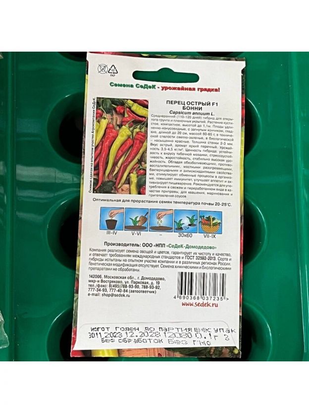 Семена Перец острый, Бонни F1, 0.1 г, цветная упаковка, Седек