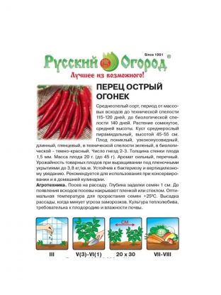 Семена Перец острый, Огонек, 0.3 г, цветная упаковка, Русский огород