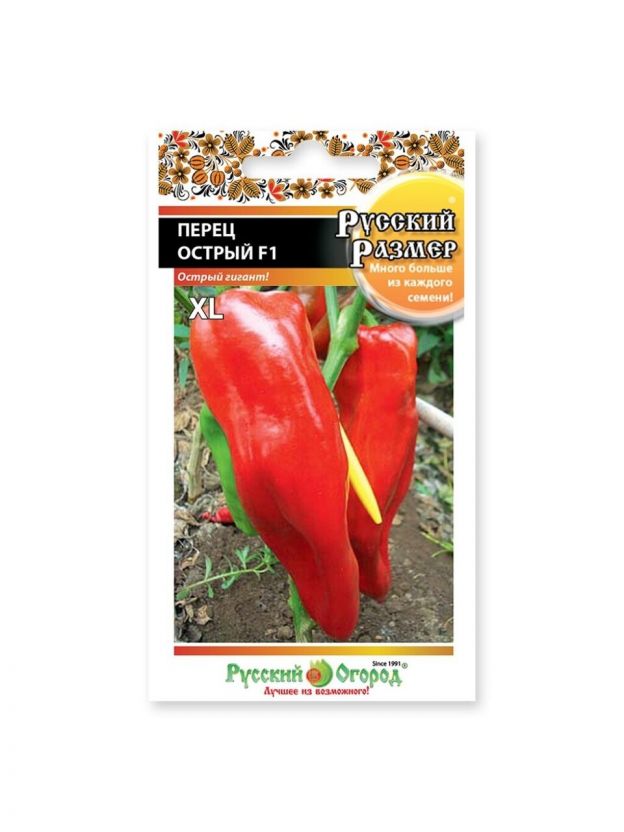 Семена Перец острый, Русский размер F1, цветная упаковка, Русский огород