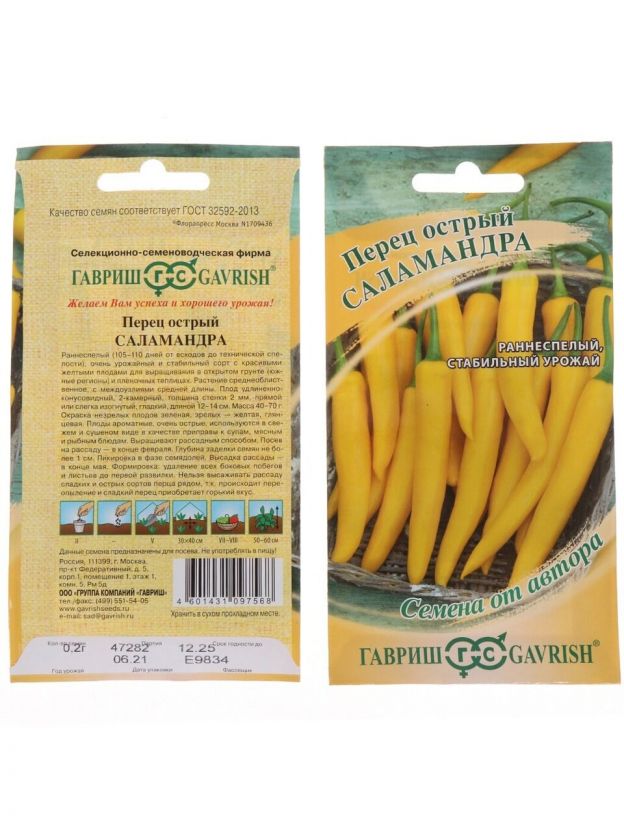 Семена Перец острый, Саламандра, 0.1 г, Семена от автора, авторские, цветная упаковка, Гавриш