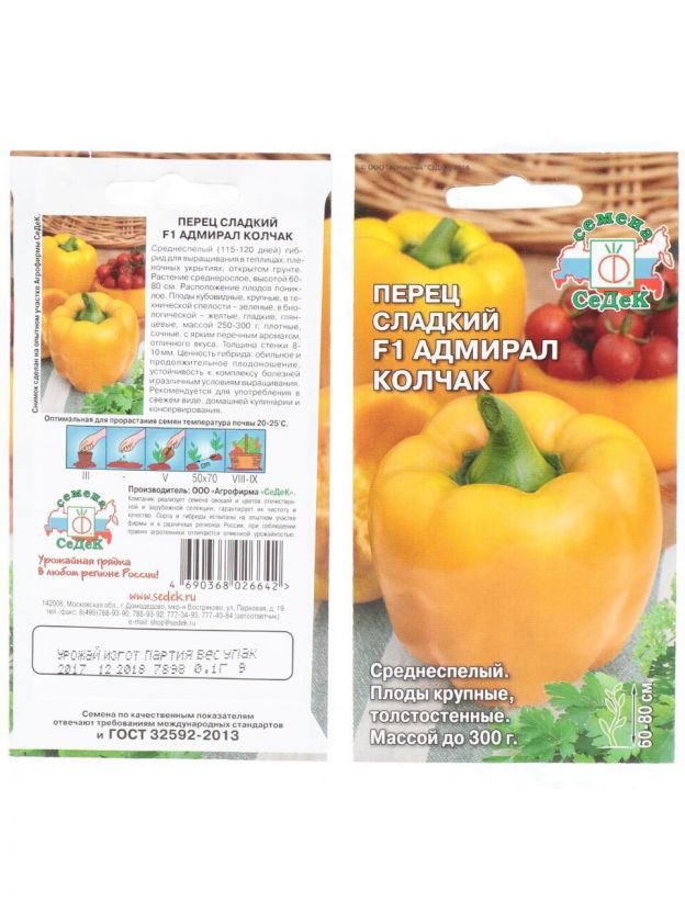Семена Перец сладкий, Адмирал Колчак F1, цветная упаковка, Седек