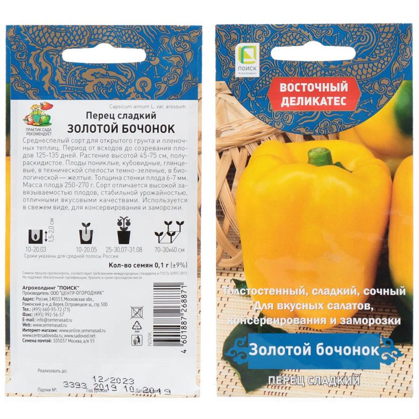 Семена Перец сладкий, Золотой бочонок, 0.1 г, цветная упаковка, Поиск