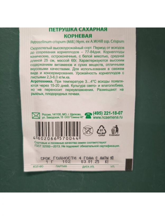 Семена Петрушка корневая, Сахарная, 1 г, Первая цена, белая упаковка, Русский огород