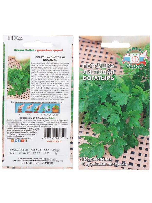 Семена Петрушка листовая, Богатырь, 2 г, цветная упаковка, Седек