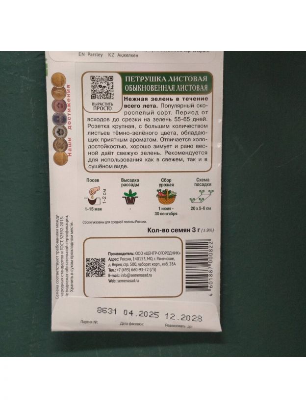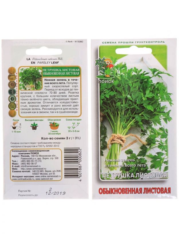 Семена Петрушка листовая, Обыкновенная листовая, 3 г, цветная упаковка, Поиск