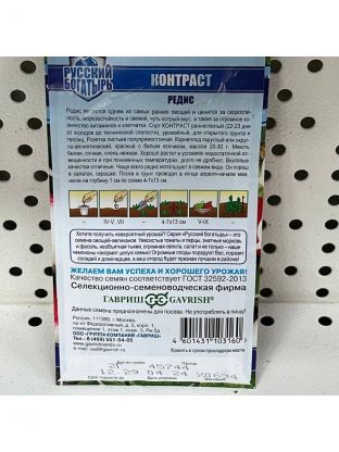 Семена Редис, Контраст, 2 г, Русский богатырь, цветная упаковка, Гавриш