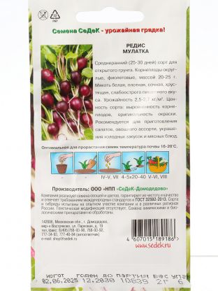 Выбирая семена редиса Мулатка от Седек, вы получаете опыт экспертов и гарантированное качество.