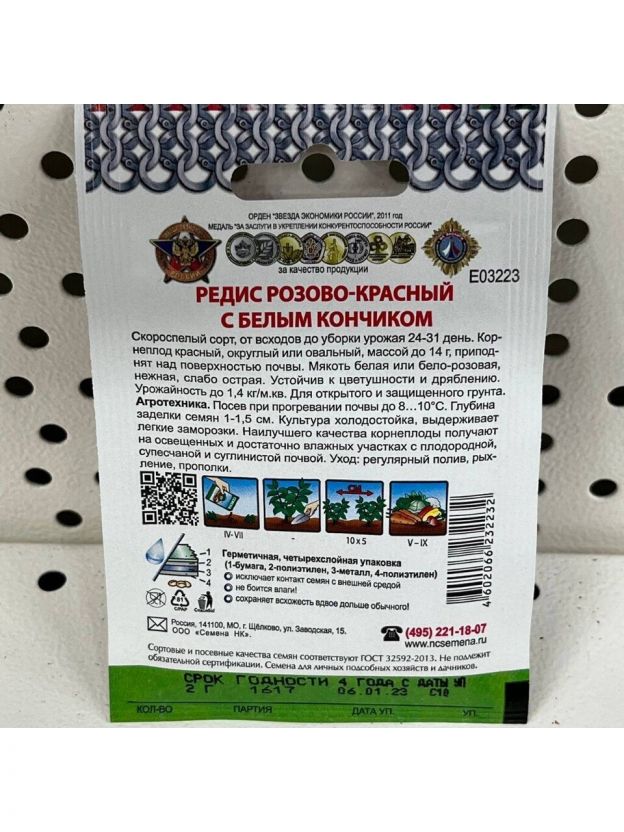 Семена Редис, Розово-красный с белым кончиком, 2 г, Кольчуга, цветная упаковка, Русский огород