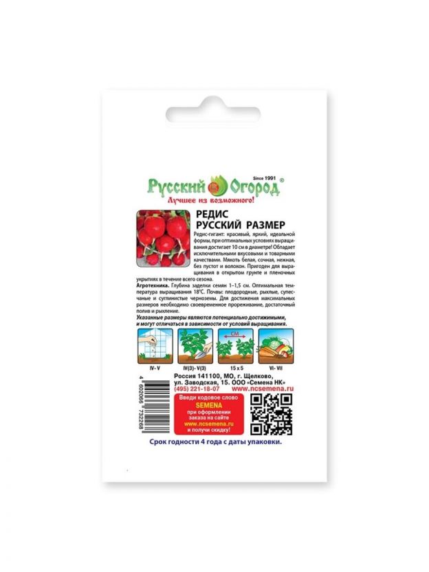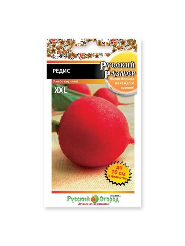 Семена Редис, Русский размер, цветная упаковка, Русский огород
