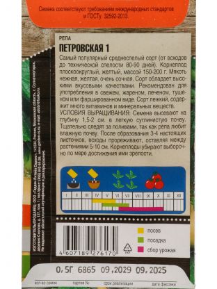 Семена репы Петровская 1, 0.5 г — урожайная классика для вашего огорода: свежесть, проверенное качество, экономия времени и денег.