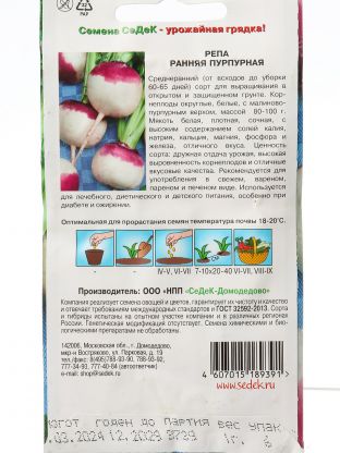 - Стабильная всхожесть — отборные семена репы с контролем качества от бренда Седек.