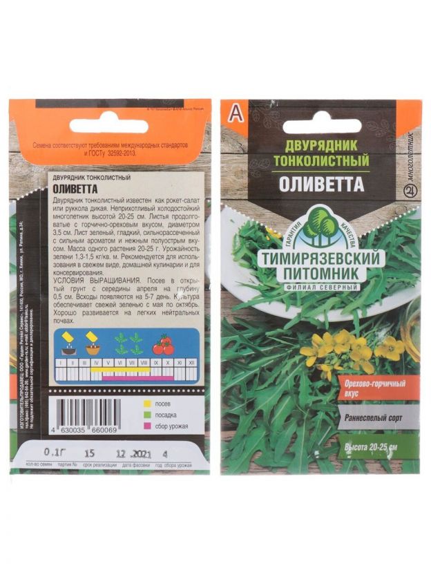 Семена Рукола, Оливетта, 0.1 г, цветная упаковка, Тимирязевский питомник