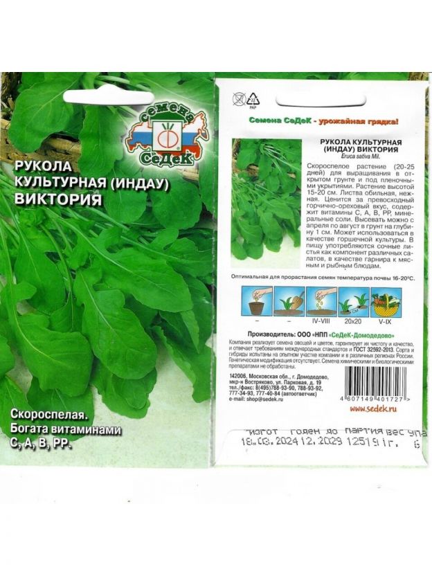 Семена Рукола, Виктория, 1 г, цветная упаковка, Седек