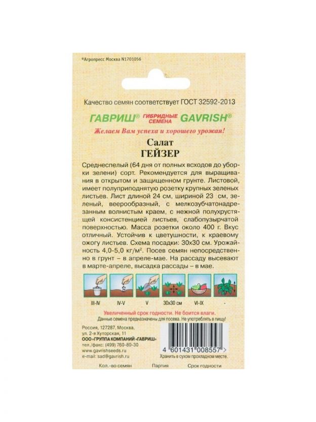 Семена Салат листовой, Гейзер, 0.5 г, цветная упаковка, Гавриш
