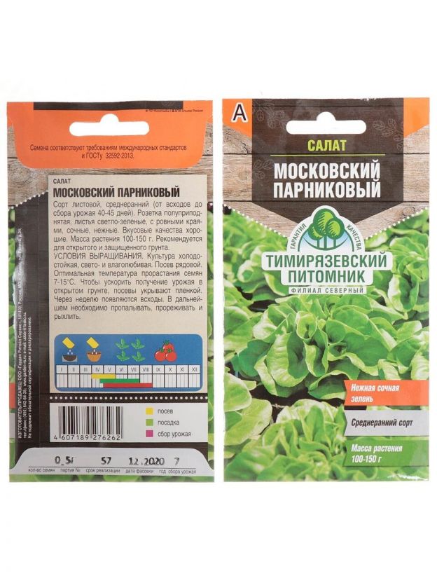 Семена Салат листовой, Московский парниковый, 0.5 г, цветная упаковка, Тимирязевский питомник