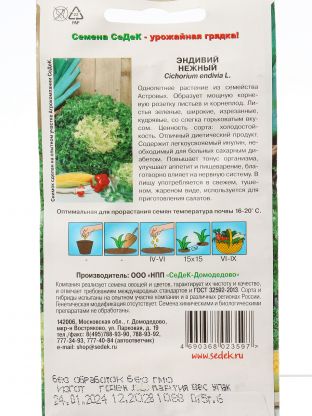 Семена фасуются в цветную упаковку, что удобно для хранения и быстро позволяет найти нужный сорт среди других культур. Производитель — Седек, страна продавца — Россия.