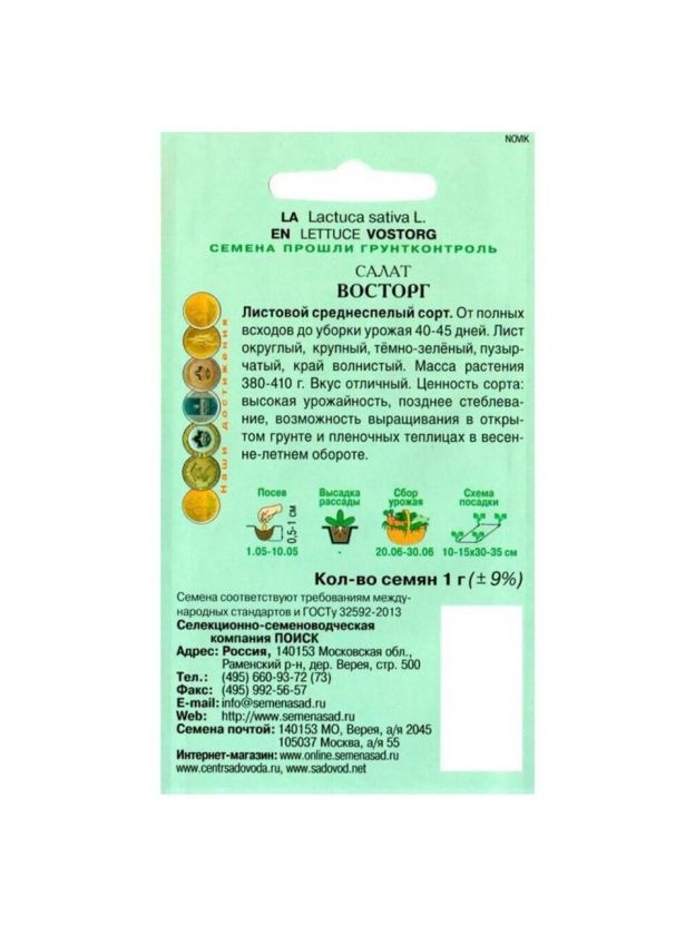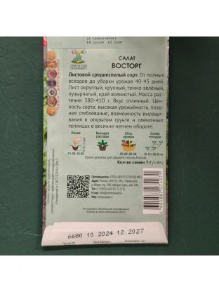 Семена Салат листовой, Восторг, 1 г, цветная упаковка, Поиск