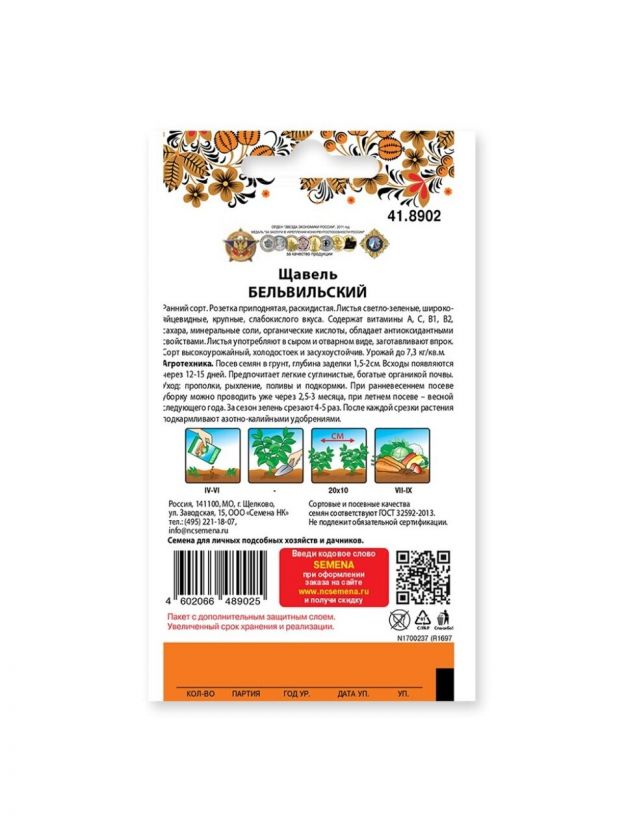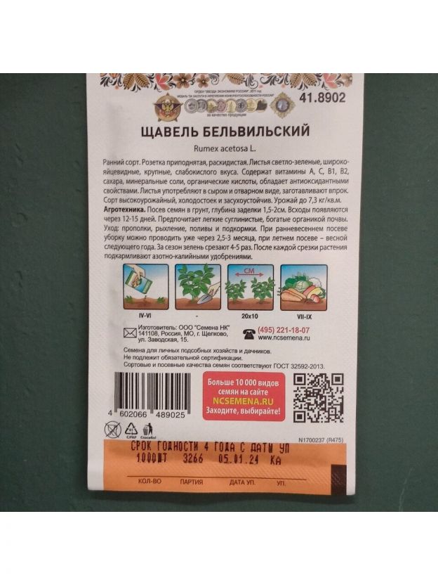Семена Щавель, Бельвильский, 200% NEW, цветная упаковка, Русский огород