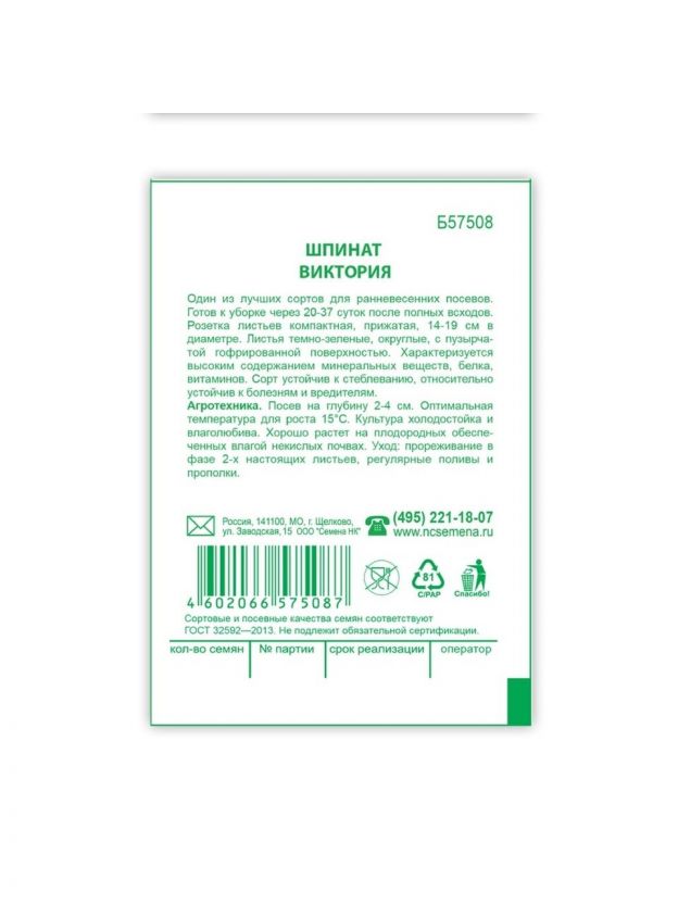 Шпинат "Виктория" - идеальный выбор для тех, кто ценит качество и экономию. Подходит для выращивания в условиях России.