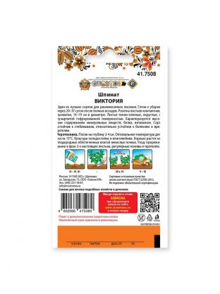 Семена Шпинат, Виктория, 4 г, 200% NEW, цветная упаковка, Русский огород