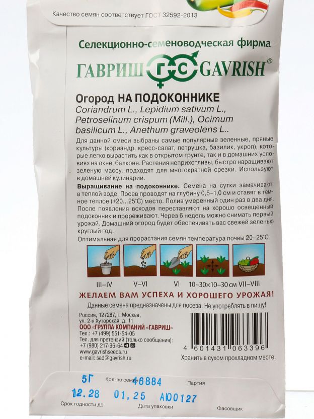 Выбирайте семена «Огород на подоконнике» 5 г Гавриш, чтобы всегда иметь под рукой свежую зелень, экономить на покупке салатов и удивлять близких собственным мини-огородом.