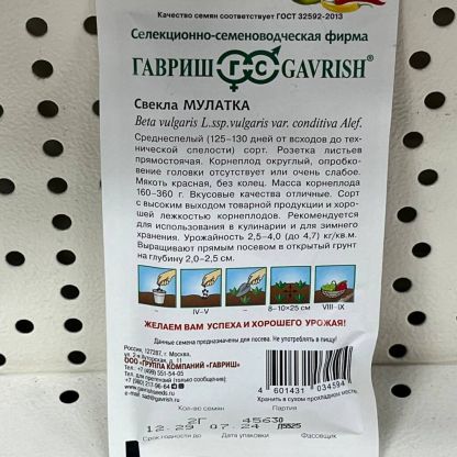 Семена Свекла, Мулатка, 3 г, столовая, цветная упаковка, Поиск