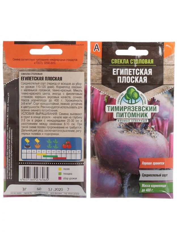 Семена Свекла, Египетская плоская, 3 г, цветная упаковка, Тимирязевский питомник